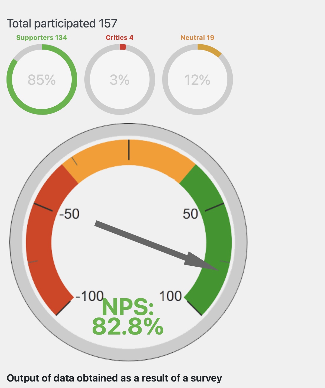 Out of the 157 who responded, the Net Promotor Score was a whopping +83.