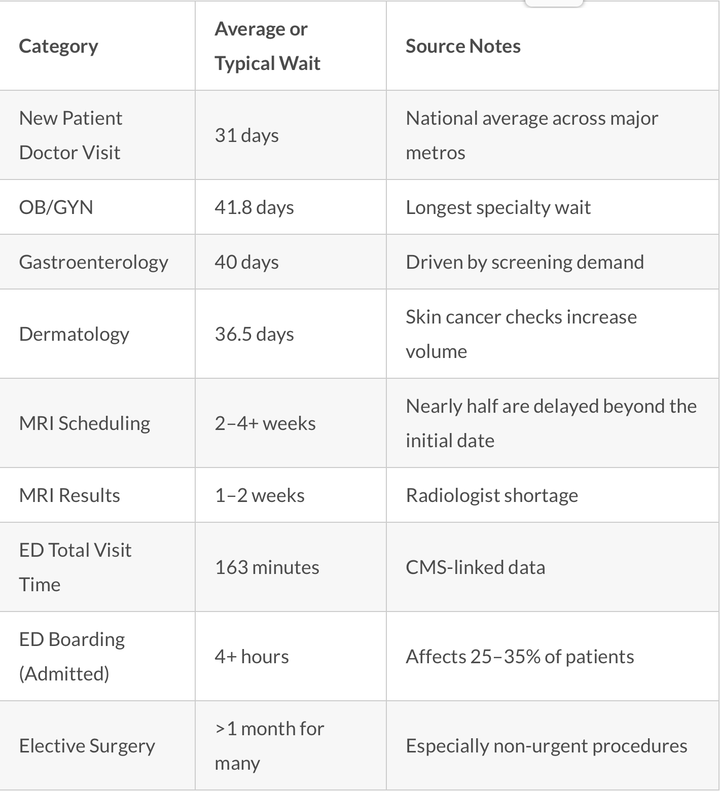 - Hospital consolidation: Fewer independent practices → fewer appointment openings.