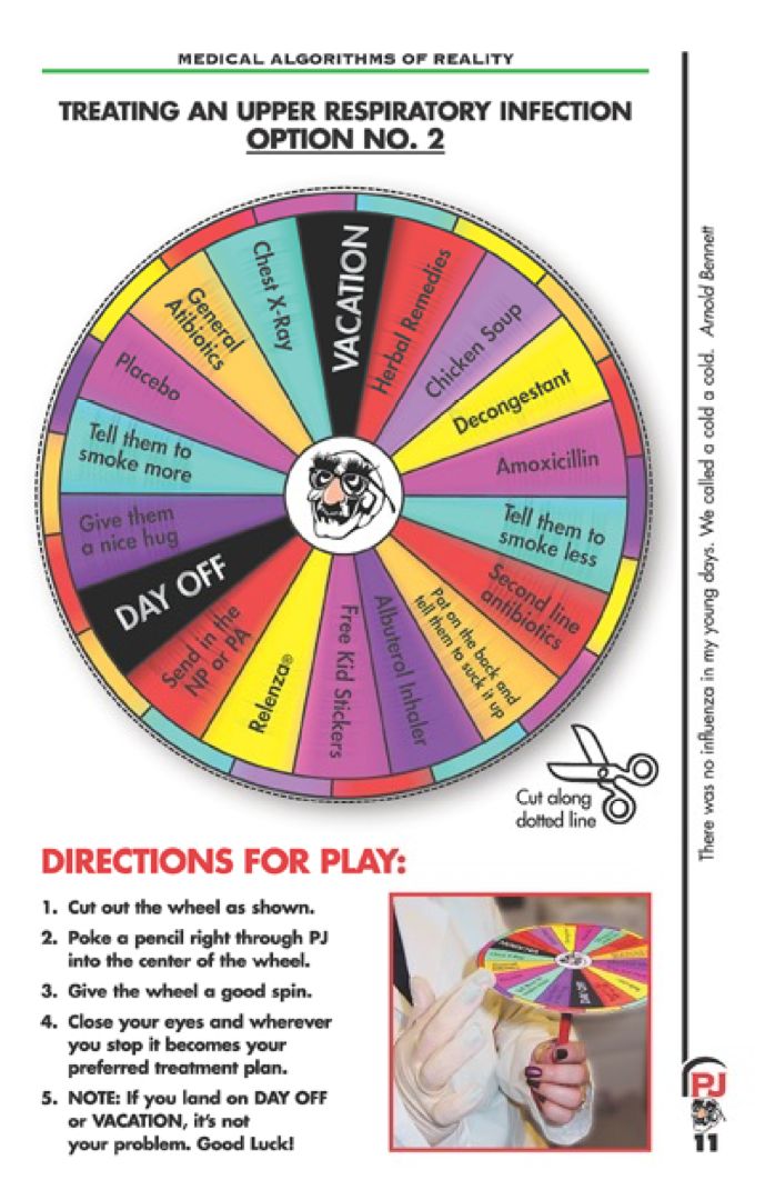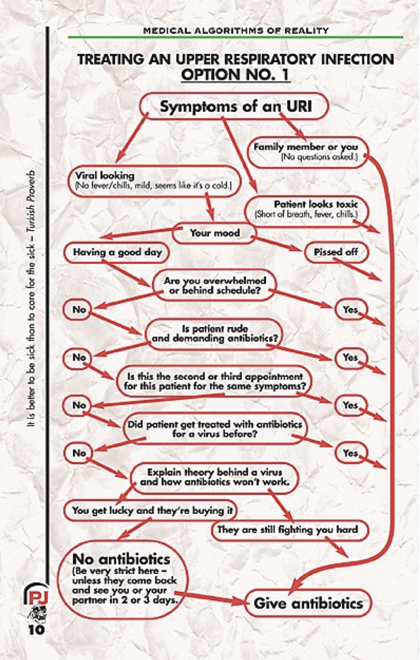 If you celebrate Christmas then I hope you and your family have a wonderful day. If you don’t celebrate then Happy Holidays and enjoy the day off! Either way, I give you the above algorithm for treating patients with an upper respiratory illness. It’s from the Placebo Journal many years ago. If you don’t like this option then try this:
