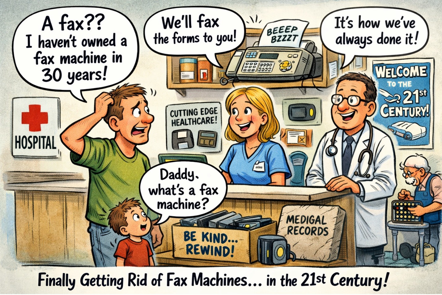 I haven’t used a fax machine in over 30 years.  However, most practices, hospitals, etc. would not innovate because they said nothing was HIPAA-compliant except fax machines.  I never understood that, but hey, there’s plenty about the healthcare status quo that I don’t understand.