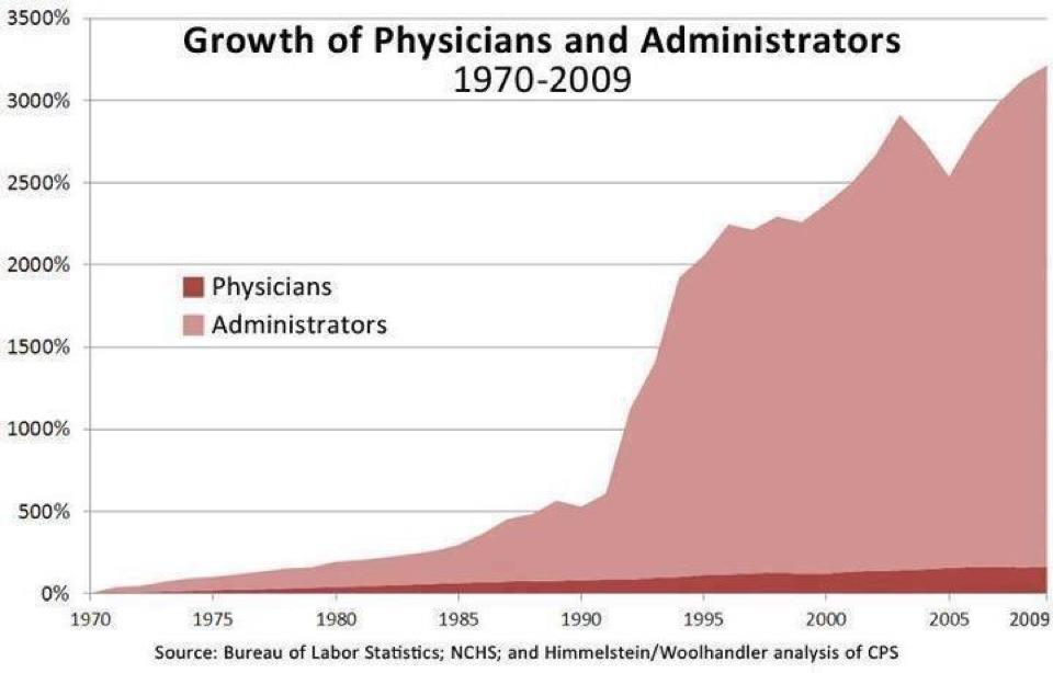 This graph shows why Direct Primary Care is continuing to grow. I have heard criticism of this image that it may not be accurate. Duh. It stopped in 2009 before the ACA made things even worse with administrative bloat.