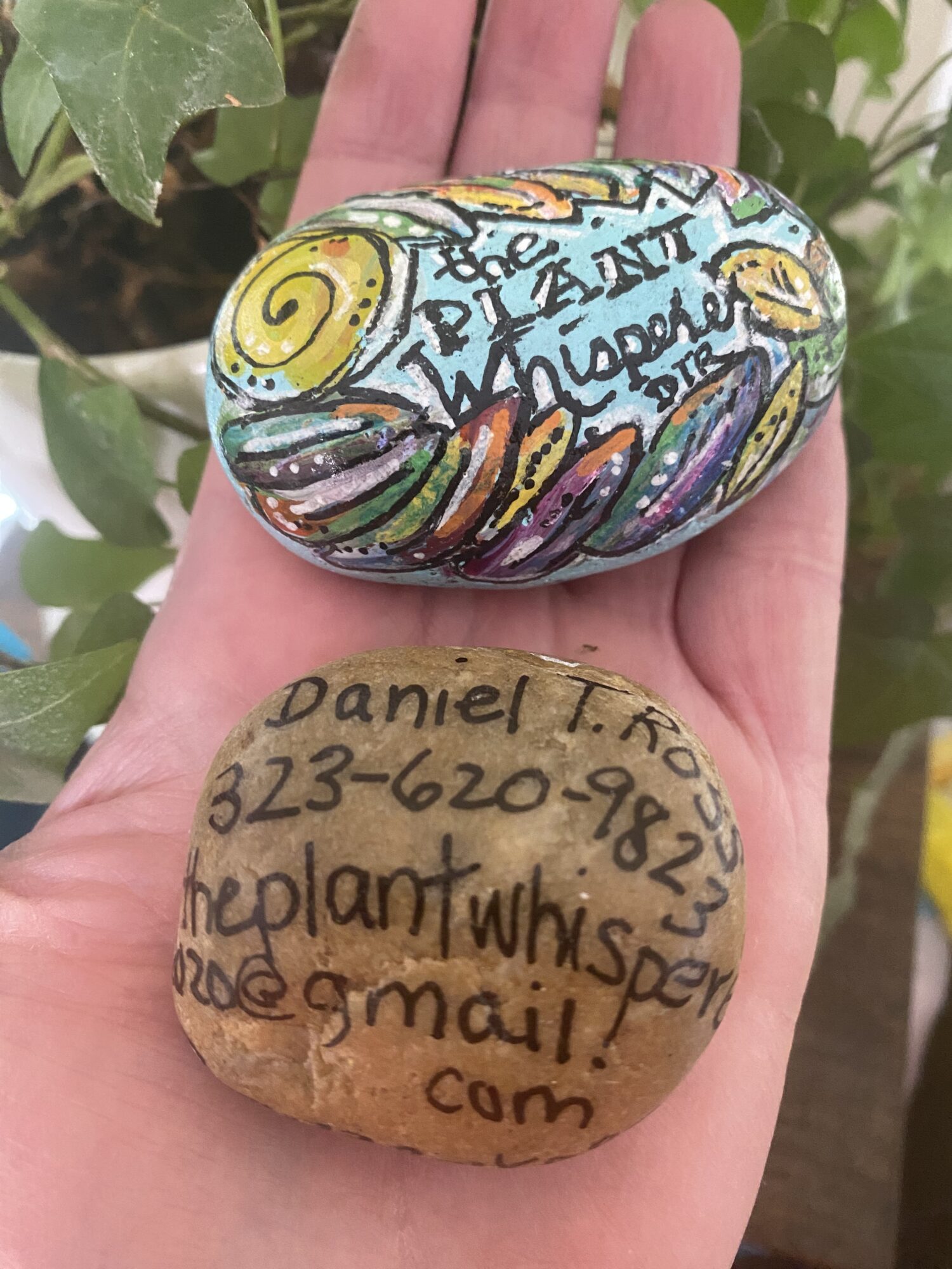 One of my former patients, who runs a botanical business, impressed me with his unconventional business card. He calls himself the “plant whisperer” and crafts hand-painted rocks bearing his name and contact details—a memorable touch indeed.
